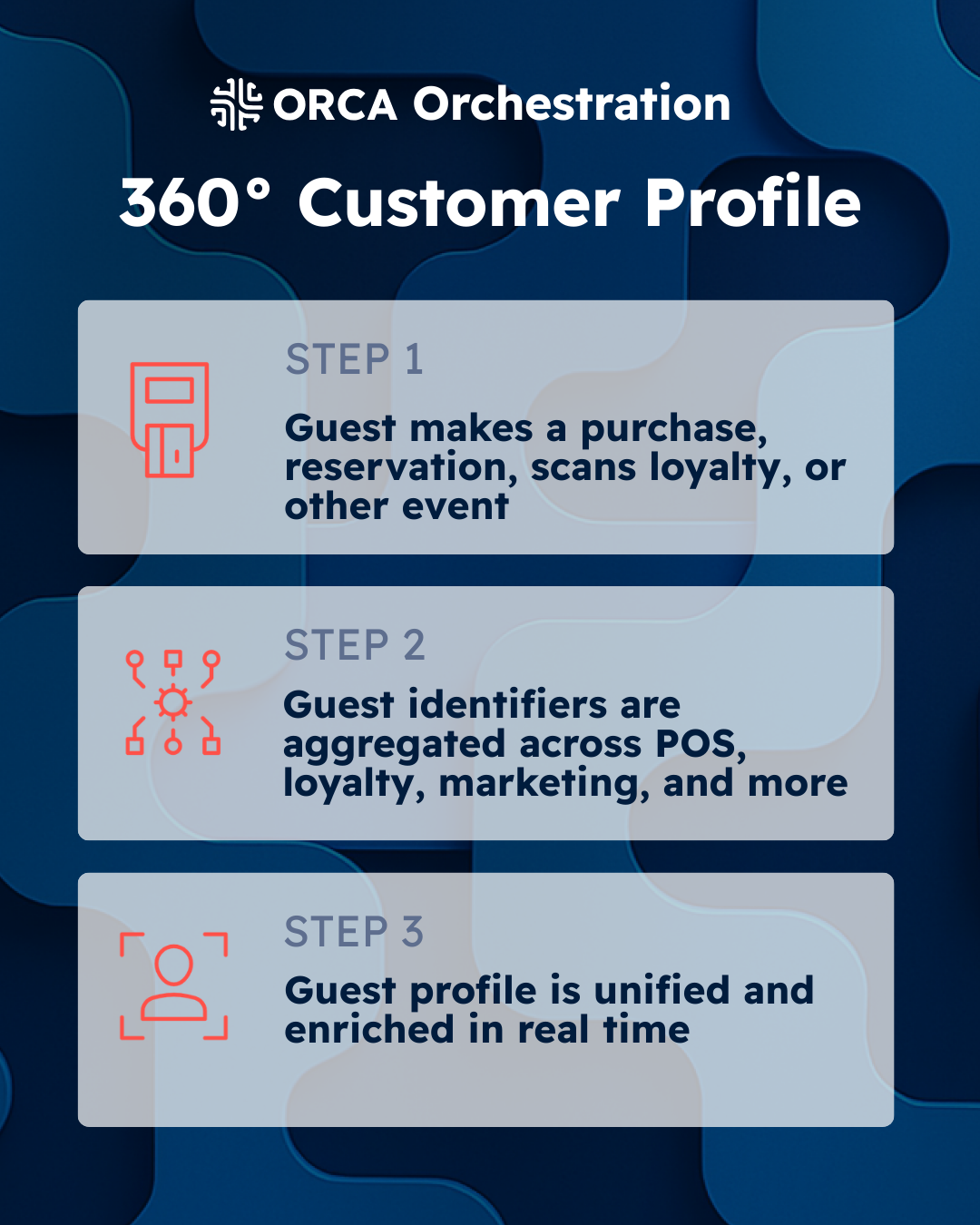 ORCA’s universal connectivity platform democratizes this process, enabling Restaurant X to build these complete customer profiles through creative linking and automation—without having to expend valuable time and resources.